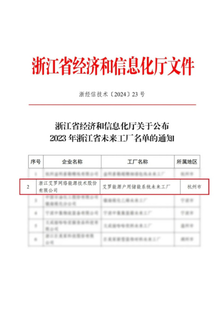 “35273能源户用储能系统未来工厂”上榜浙江省未来工厂